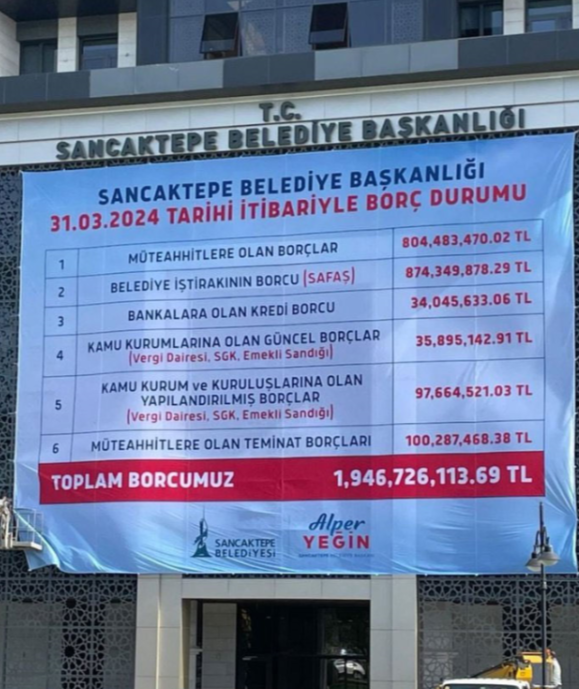 Bunların yanı sıra belediyenin devreden toplam 1 milyar 946 milyon 726 bin 113.69 TL’lik bir borcu bulunuyor.