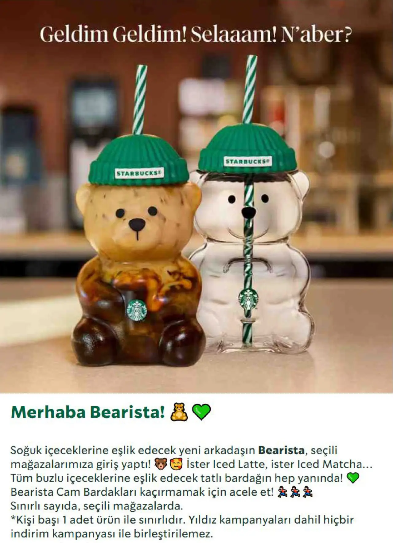 ABD'de satışa sunulduğu dönemde mağaza önlerinde uzun kuyruklar oluşturan ve sosyal medyada viral olan Starbucks'ın "Bearista" isimli ayıcık formundaki cam bardağı, bugün Türkiye'deki kahve severlerle buluştu. Yeşil şapkası ve sevimli tasarımıyla dikkat çeken ürün, sınırlı sayıda ve kişi başı 1 adet sınırı ile satışa sunulmasına rağmen, bildik manzaraların önüne geçilemedi.