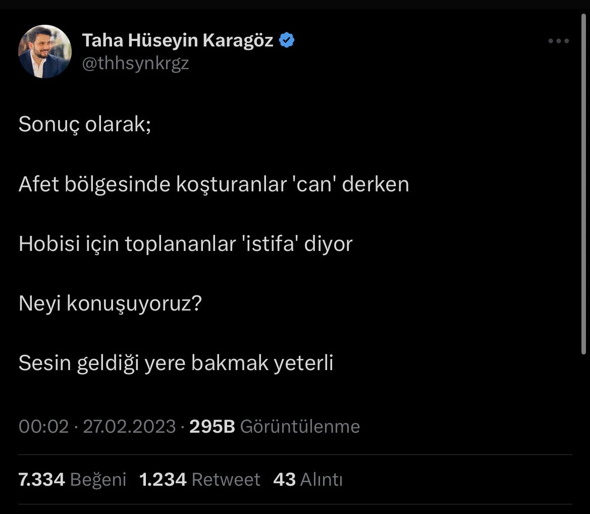 İki tweeti bir araya getirdiğimizde tutarlılık bulmakta güçlük çekiyoruz ancak Karagöz’ün ‘hükümet istifa’ tezahüratlarından niye rahatsız olduğunu anlayamadık.