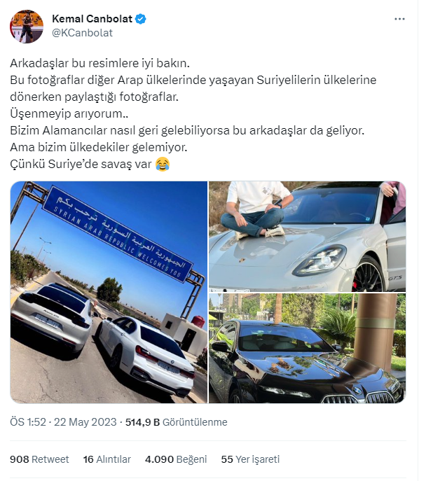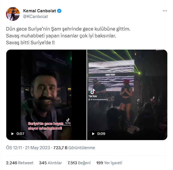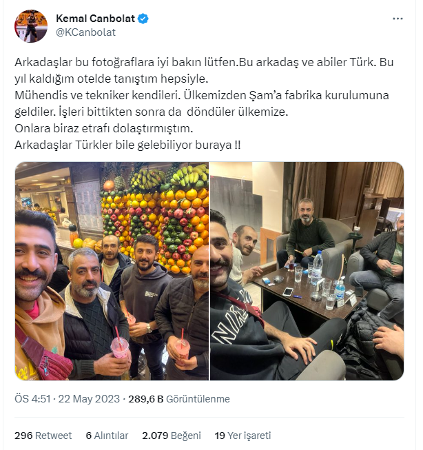 Canbolat paylaşımlarında da ısrarla Suriye’de hayatın normale döndüğünü vurguluyor: