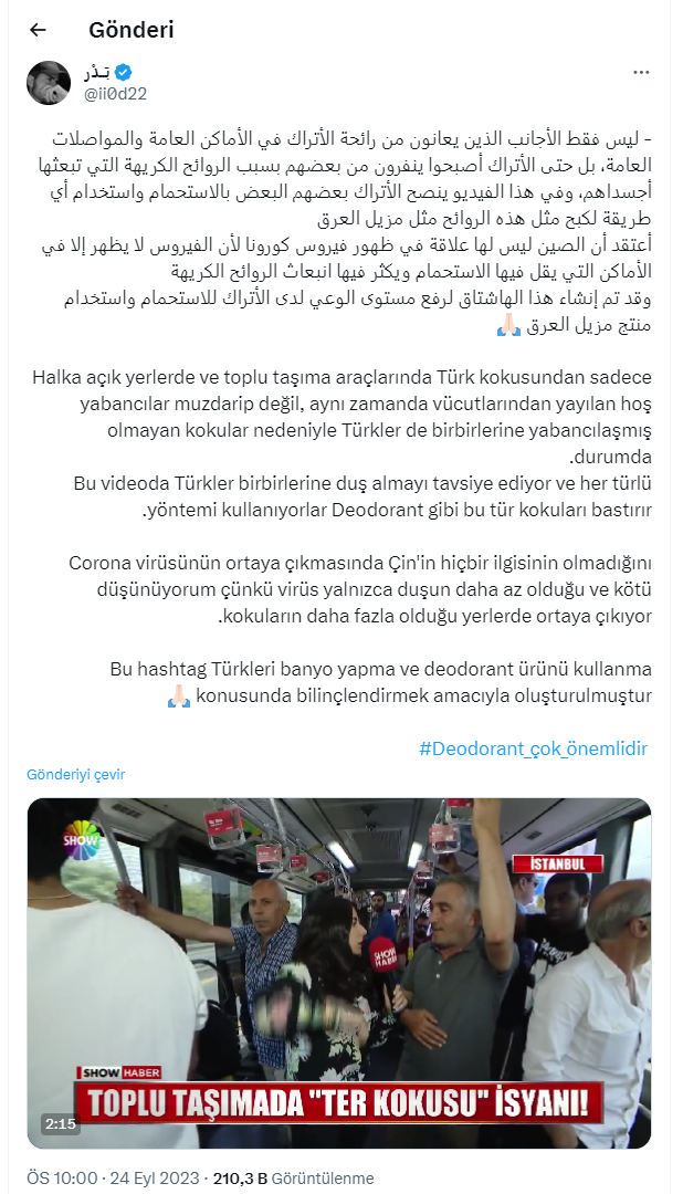 Bu hashtag Türkleri banyo yapma ve deodorant ürünü kullanma konusunda bilinçlendirmek amacıyla oluşturulmuştur 🙏🏻