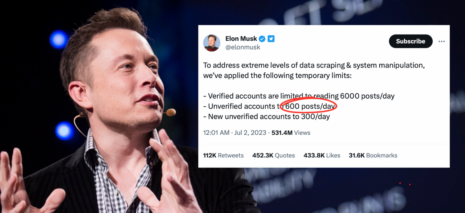 OpenAI (ChatGPT) gibi sistemlerin veriyi Twitter'dan satın almak yerine Twitter kullanıcısı taklidi yaparak bedava veri çektiği belirtiliyordu. Durum böyle olunca da Musk kullanıcılara veri sınırı koydu.