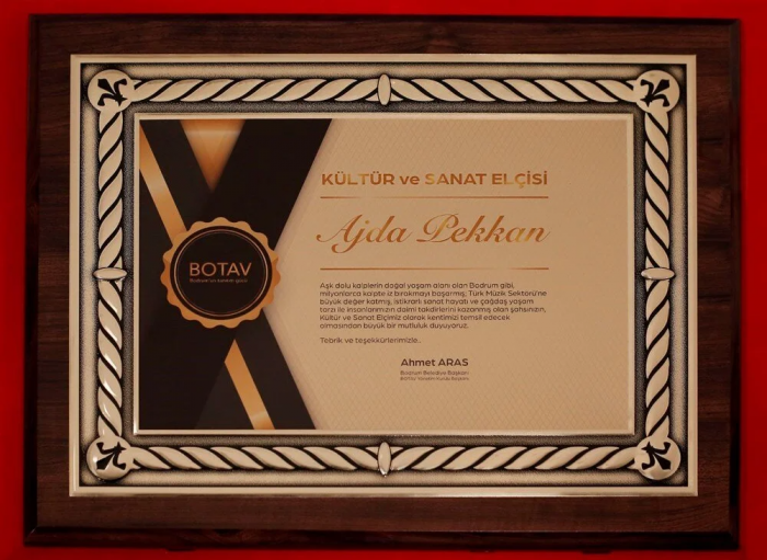 Bodrum Tanıtma Vakfı’nın 25. yıl kutlama konserinde Süperstar Ajda Pekkan’a “Bodrum Kültür ve Sanat Elçisi“ unvanı verildi.