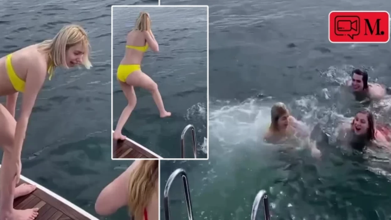 Akıntının fazla olması nedeniyle zor anlar yaşayan ikili, suya atlar atlamaz tekneye geri dönmek zorunda kaldı. O ana ilişkin görüntüler kısa sürede sosyal medyada gündem oldu.