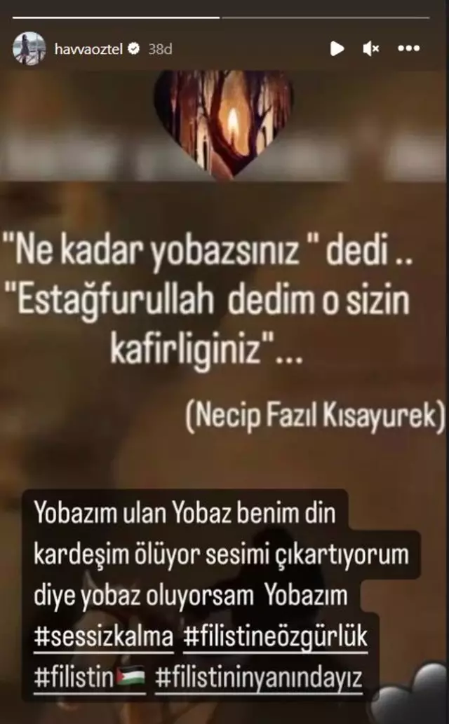 "Neredesiniz Müslümanlar bu nasıl bir acı nasıl kayıplar" diyerek isyan eden Havva Öztel sonraki paylaşımında ise "Yobazım ulan yobaz benim din kardeşim ölüyor, sesimi çıkartıyorum diye yobaz oluyorsam yobazım" dedi.