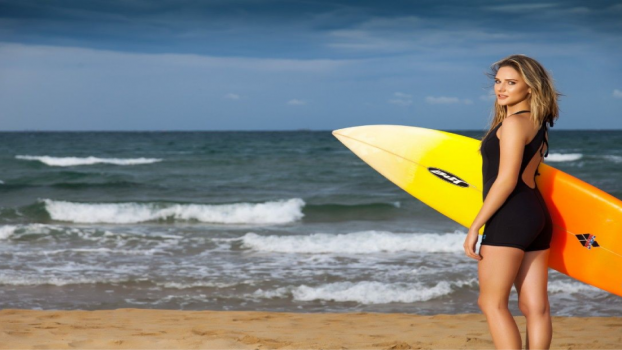 Tebessüm ederek eğitmenden uzaklaşan Alina Boz uçurtma sörfünde hünerlerini sergilerken, Mithat Can Özer bar kısmında arkadaşlarıyla