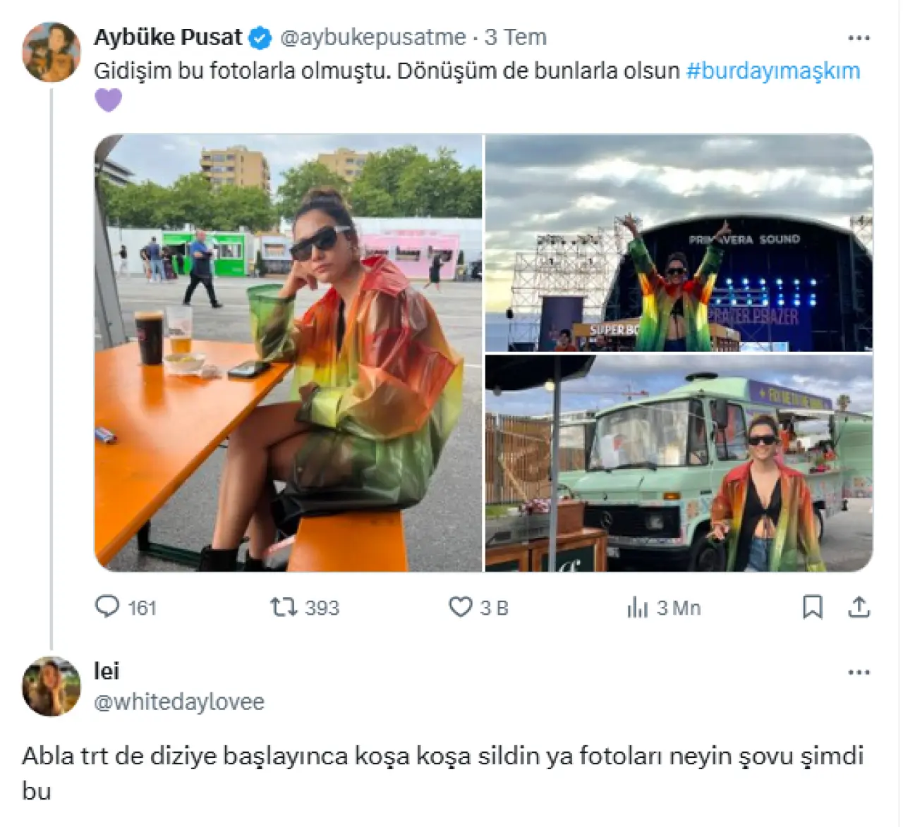 Oyuncu Aybüke Pusat, söz konusu eleştiriler karşısında henüz bir açıklama yapmadı. Ancak paylaşımı, kariyer tercihleri ve duruşu açısından sosyal medya kullanıcılarını ikiye böldü.