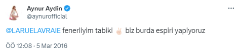 Koyu Beşiktaşlı olarak bilinen Aynur Aydın’ın geçmiş paylaşımlarında Fenerbahçeli olduğu ortaya çıktı.