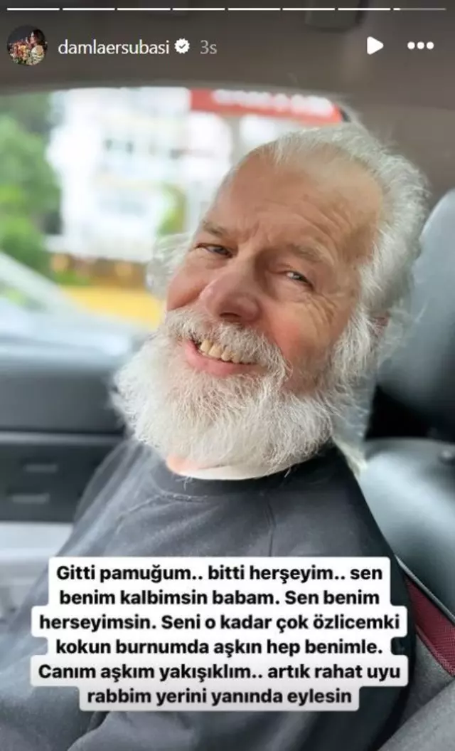 Babasını paylaşarak acısını dile getiren Damla Ersubaşı "Gitti pamuğum bitti her şeyim" dedi.