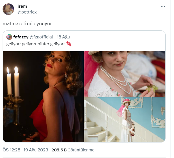 Geçtiğimiz günlerde filmden yeni karelerin yayınlanması üzerine bir sosyal medya kullanıcısının, “Matmazel'i mi oynuyor?” paylaşımına cevap veren Farah Zeynep Abdullah, “Hayır Beşir'i” diyerek dalga geçti.