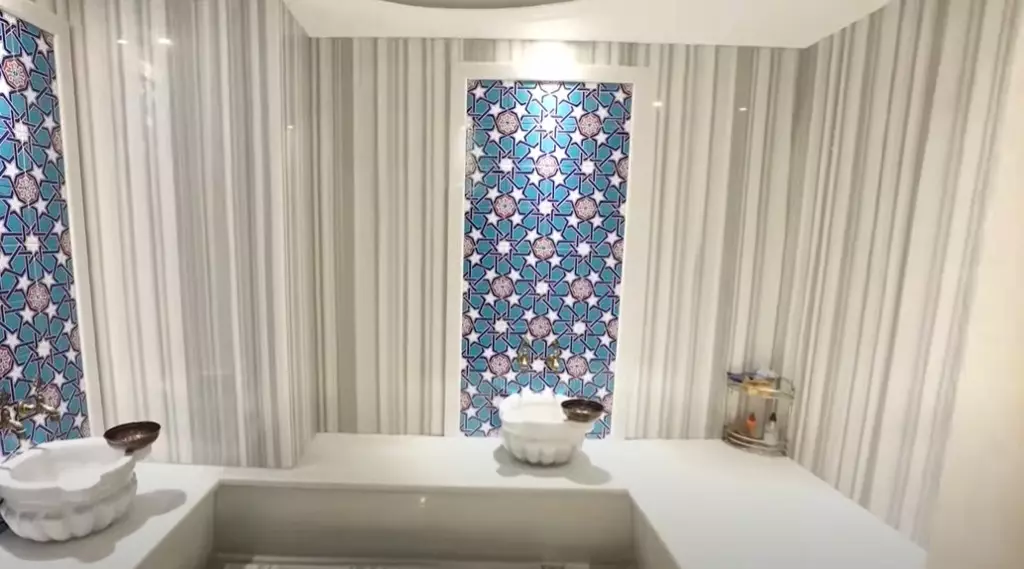 Topaloğlu'nun dört katlı villasında hamam ve sauna bile var. Her şeyi ile tam bir Türk hamamı yaptırmış.