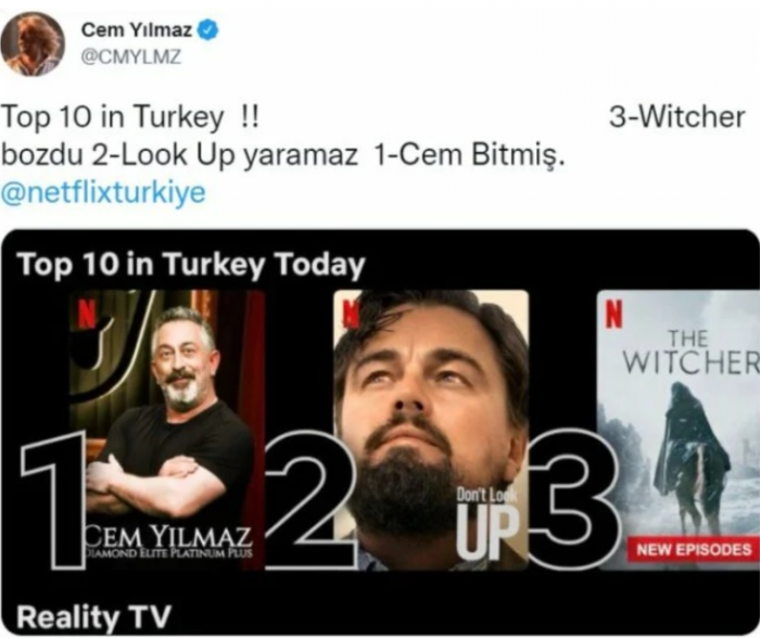 “Top 10 in Turkey! 3- Witcher bozdu 2- Look Up yaramaz 1- Cem bitmiş.”