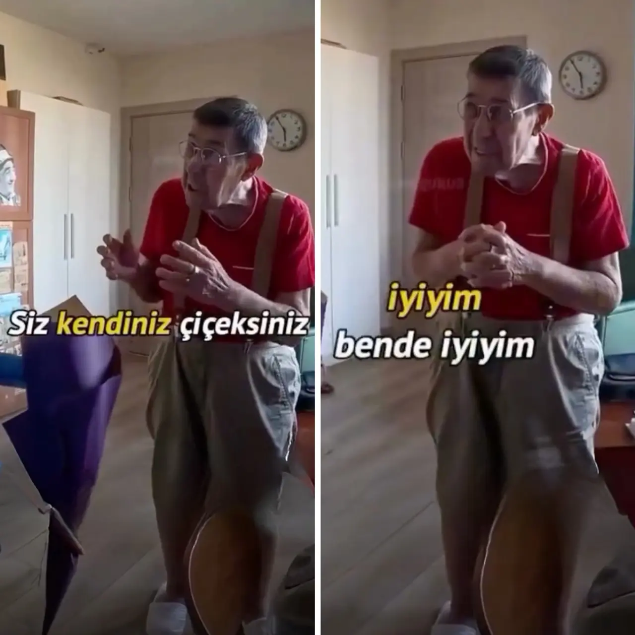 Geçtiğimiz saatlerde ortaya çıkan videoda, huzurevi sakinlerine tek tek gül hediye eden gençler arasında Zihni Göktay da fark edildi. Kibarlığıyla dikkat çeken usta, çiçek veren gence teşekkür ederek “Siz kendiniz çiçeksiniz” dedi. Video, Göktay’ın zarafeti kadar zor durumunu da gözler önüne serdi ve izleyenlerin yüreğini burktu.