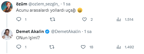 Demet Akalın'a bir takipçisi "Acun'u arasalardı yollardı uçağını" yorumunu yapınca ünlü şarkıcı "Onu işi mi" yanıtını verdi.