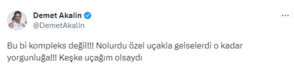 "Bu bir kompleks değil!" diyen ünlü isim paylaşımında "Ne olurdu özel uçakla gelselerdi o kadar yorgunluğa! Keşke uçağım olsaydı" cümlelerine yer verdi.
