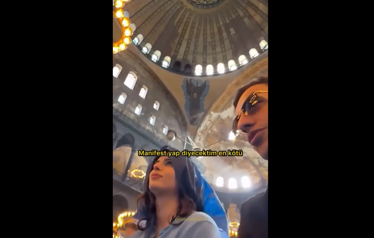 Ünlü çift Derin Talu ve Ebo’nun cami ziyareti sosyal medyanın gündemine oturdu. Ebo’nun camiye girerken “Bismillahirrahmanirrahim” demesi dikkat çekerken, Derin Talu’nun besmeleyi söyleyemeyip “manifest yap” sözleri tepki çekti.