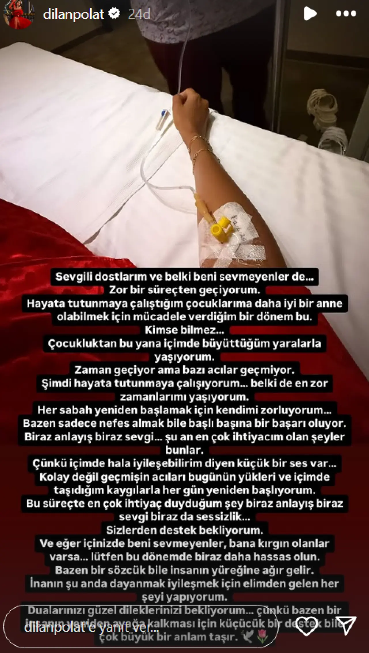 Dilan Polat’ın samimi açıklamaları kısa sürede binlerce etkileşim aldı. “Yalnız değilsin”, “Sen güçlü bir annesin”, “Bu da geçecek” gibi yorumlarla birçok kişi destek verdi. Takipçileri, onu yeniden eski gücünde ve umut dolu bir şekilde görmek istediklerini belirtti.