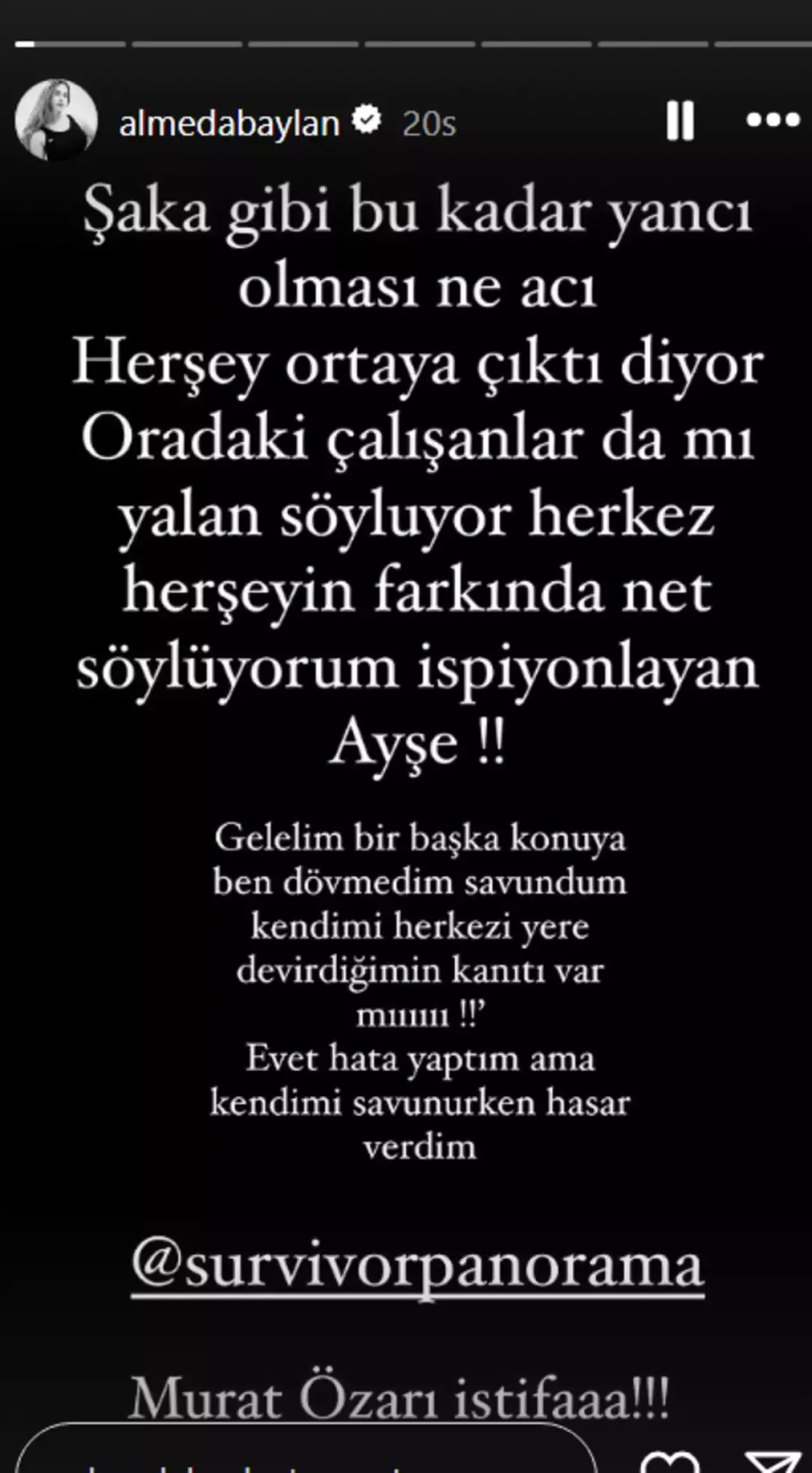 Survivor Panorama sunucusu Murat Özarı’ya da sert çıkan Almeda, “İstifa” çağrısı yaparak, programdaki yorumlarıyla ilgili tepkisini açıkça dile getirdi.