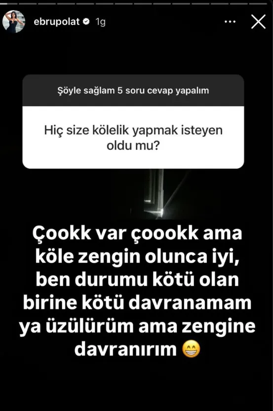 Sosyal medyada kendisine sorulan sorulara yanıt veren Ebru Polat'ın cevapları şoke etti.