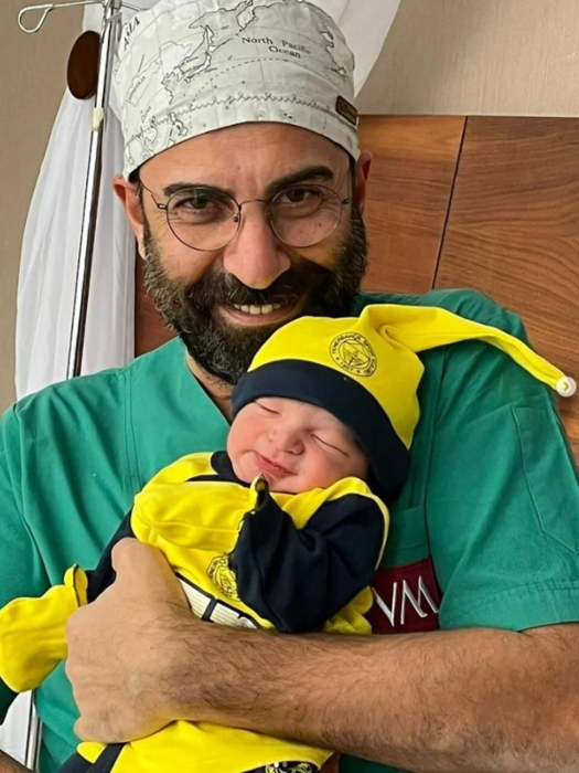 Koyu Fenerbahçeli olduğu bilinen Karayel, oğlu Can'a doğar doğmaz sarı-lacivert tulum giydirdi.