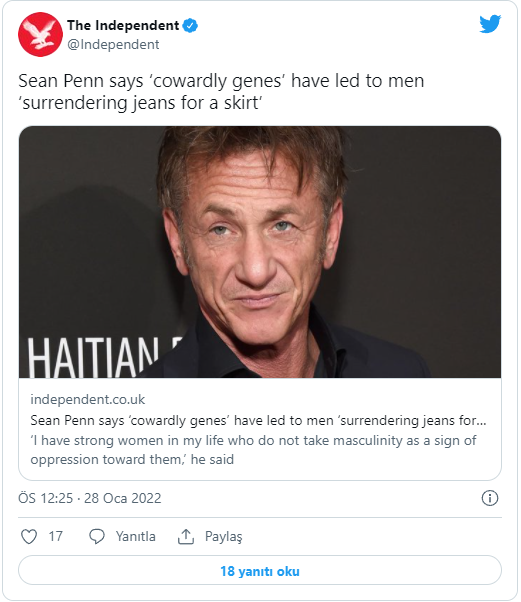 Ünlü oyuncu Sean Penn, verdiği bir röportajda maskülenliğe ilişkin değerlendirmelerde bulundu.