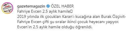 GazeteMagazin'in özel haberine göre 36 yaşındaki Fahriye Evcen'in 2,5 aylık hamile...