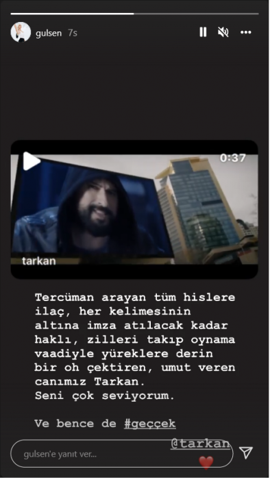 Gülşen'in Instagram'dan Tarkan'ı etiketleyerek yaptığı paylaşım şöyle: