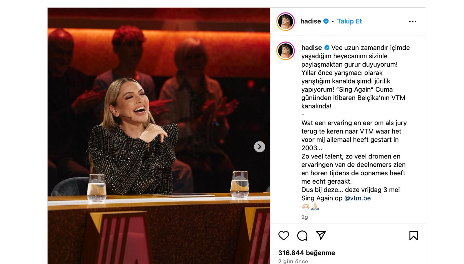 Hadise sosyal medya hesabında yaptığı açıklamada, "Ve uzun zamandır içimde yaşadığım heyecanımı sizinle paylaşmaktan gurur duyuyorum! Yıllar önce yarışmacı olarak yarıştığım kanalda şimdi jürilik yapıyorum!" ifadelerini kullandı.