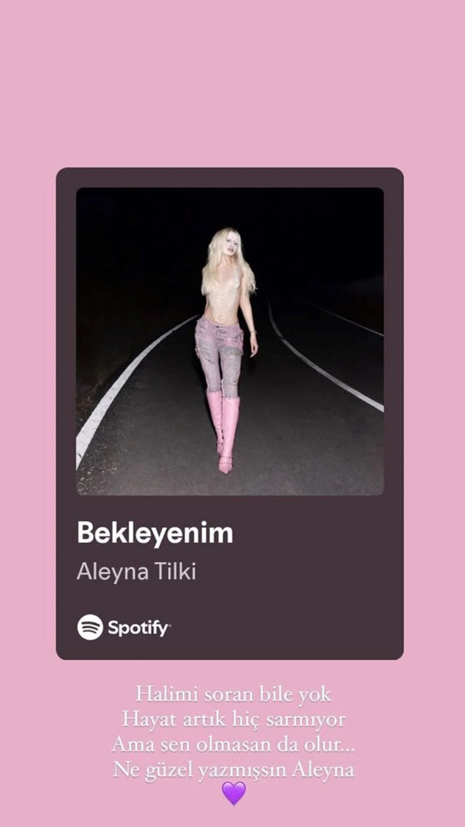 Hadise, Tilki'nin "Bekleyenim" şarkısını paylaştı ve "Ne güzel yazmışsın Aleyna" notunu düştü.