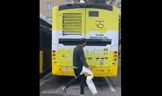 Avukat Feyza Altun’un paylaştığı videoda, bir kişinin İETT’nin üzerindeki reklamları temizlediği görüldü.