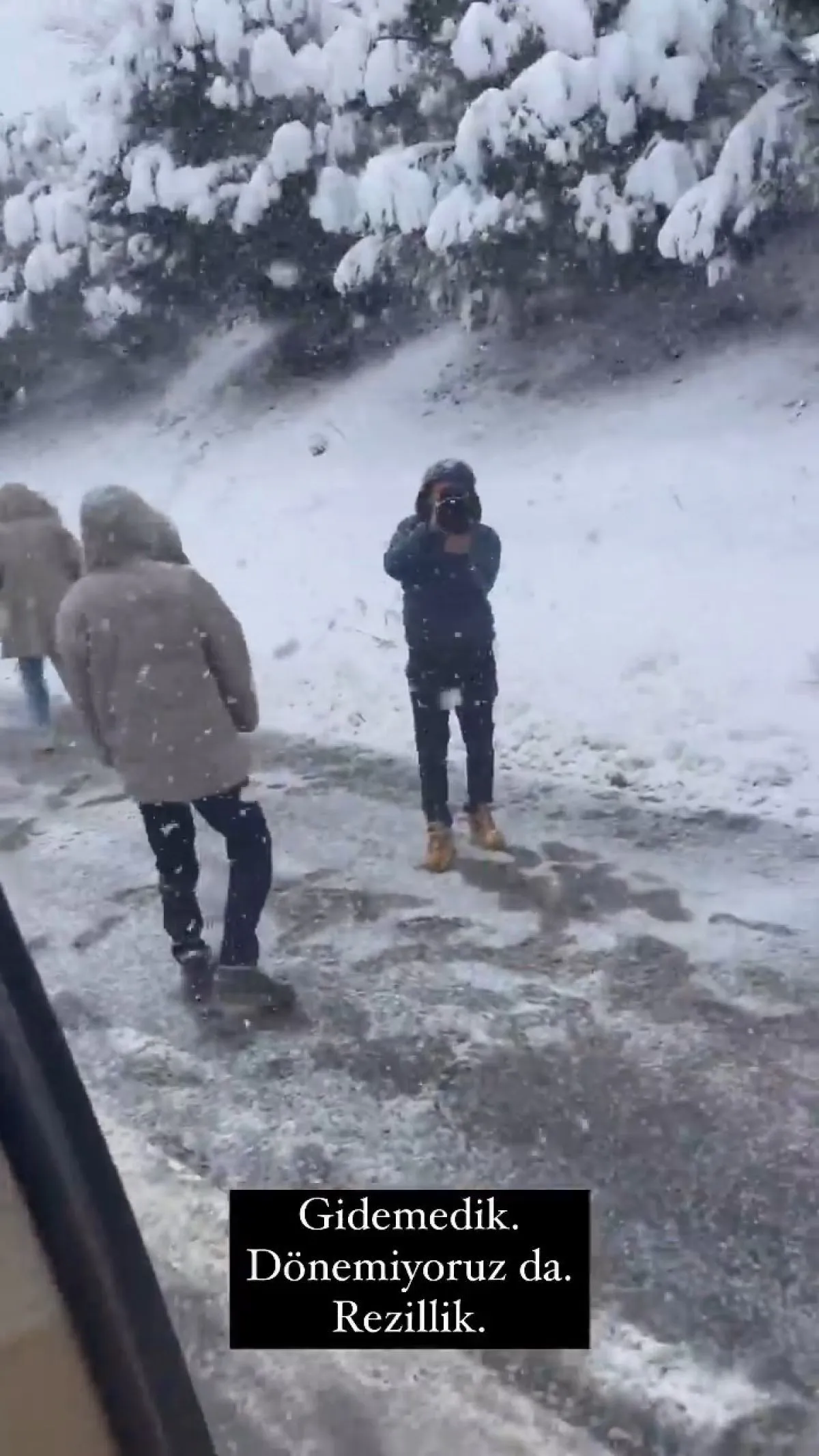 Yoğun kar yağışı sebebiyle trafikte aksamaların yaşandığı yolda mahsur kalan Derici, konserini de iptal etmek zorunda kaldı.