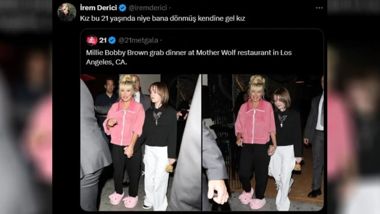 Ünlü yıldıza bir eleştiri de İrem Derici'den geldi. Derici,  Millie Bobby Brown'un fotoğrafını alıntıladı.