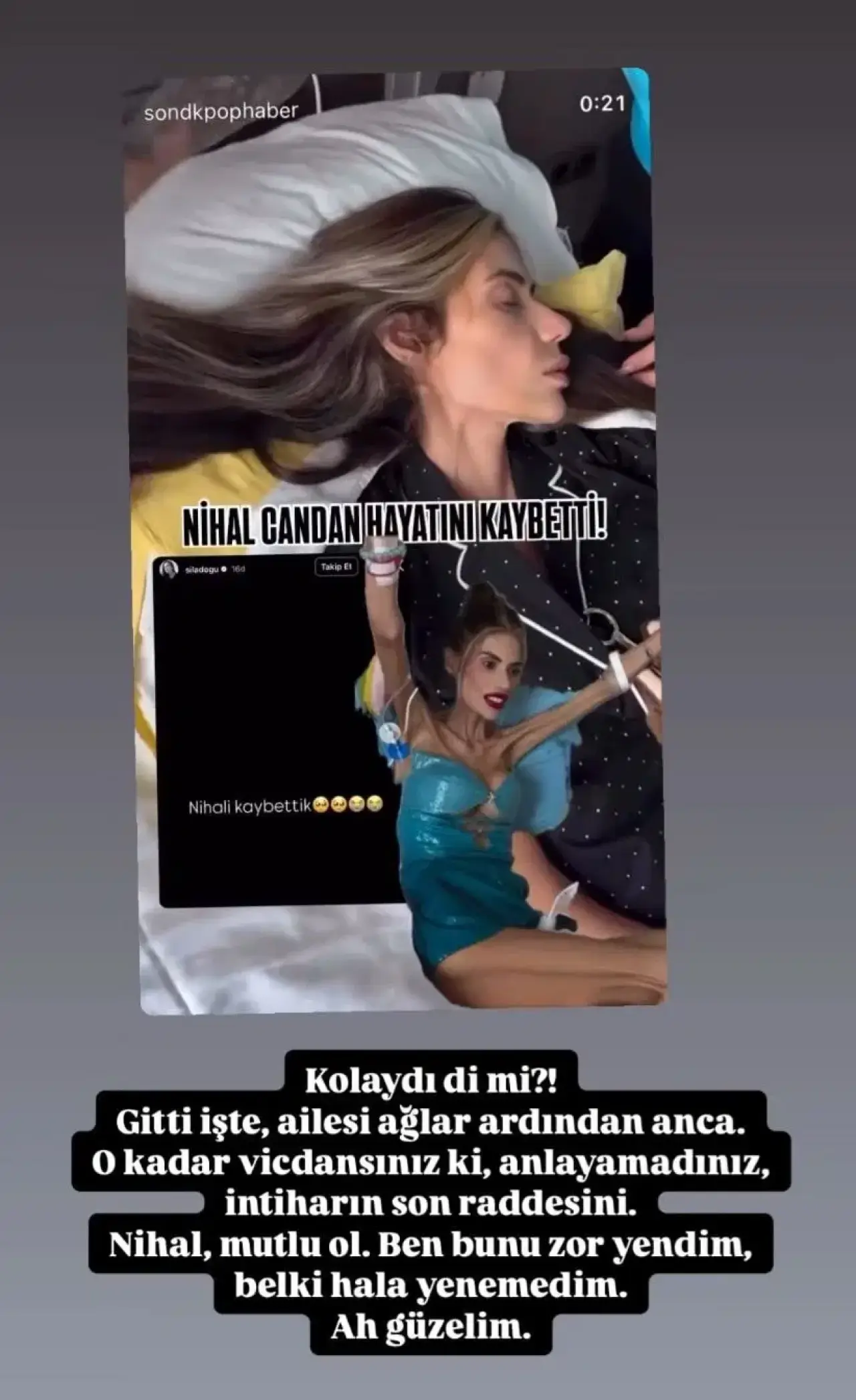 Ünlü şarkıcı İrem Derici, Nihal Candan’ın vefatı sonrası yaptığı paylaşımda, “Kolaydı değil mi? Gitti işte… Ailesi ağlar ardından ancak. O kadar vicdansızsınız ki anlayamadınız intiharın son raddesini. Nihal mutlu oldu. Ben bunu zor yendim, belki hala yenemedim” ifadelerini kullandı.