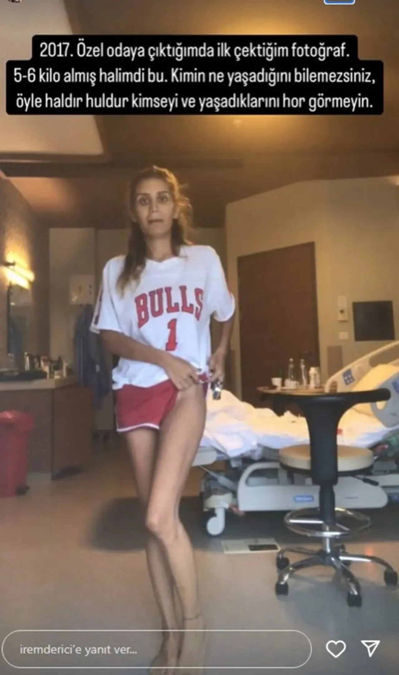 Derici, ardından Instagram hesabından 2017 yılında hastanede çekilen fotoğrafını paylaşarak, “2017. Özel odaya çıktığımda ilk çektirdiğim fotoğraf. 5-6 kilo almış halimdi bu. Kimin ne yaşadığını bilemezsiniz...” notunu düştü.