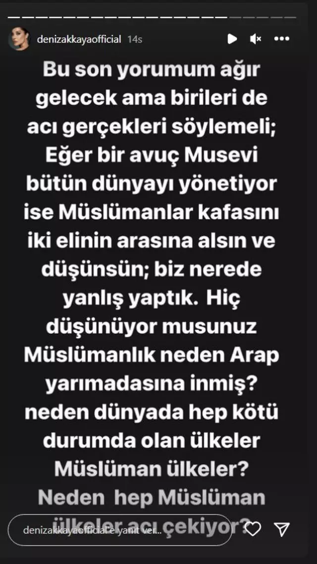 Hamas ile İsrail arasında süren çatışmalar artarken can kaybı da her geçen gün artıyor. Kara harekatına hazırlanan İsrail'İn sınır bölgesindeki son hazırlıkları gündemdeyken Deniz Akkaya sosyal medya paylaşımlarıyla dikkat çekti.