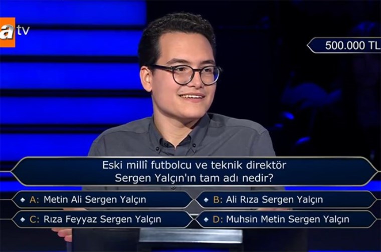 500 bin lira değerindeki soruda yarışmacıya Sergen Yalçın'ın tam adı soruldu.