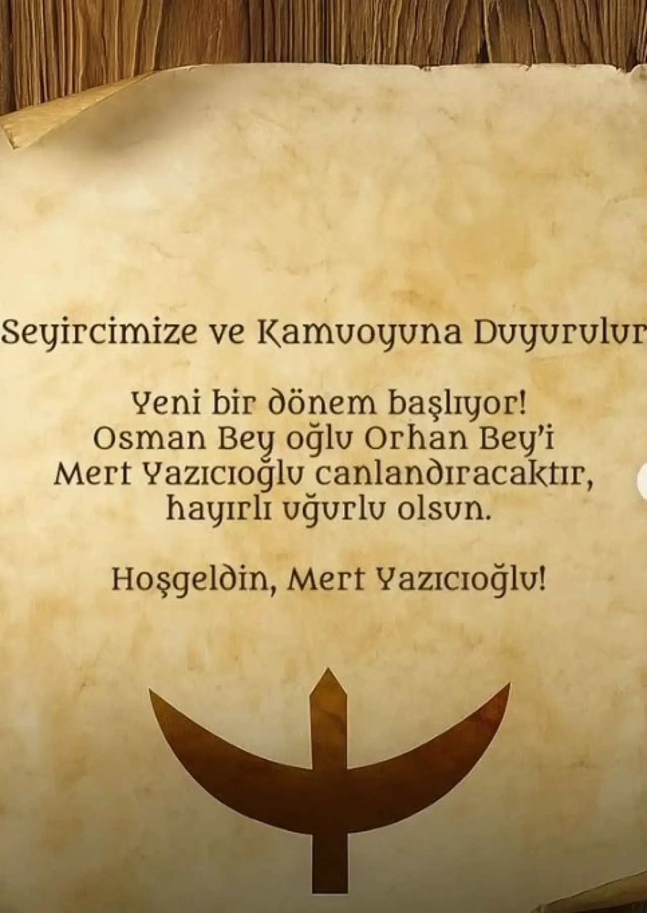 Bozdağ Film, bu önemli gelişmeyi “Yeni dönem başlıyor! Osman Bey oğlu Orhan Bey’i Mert Yazıcıoğlu canlandıracaktır, hayırlı uğurlu olsun. Hoşgeldin, Mert Yazıcıoğlu!” sözleriyle duyurdu.