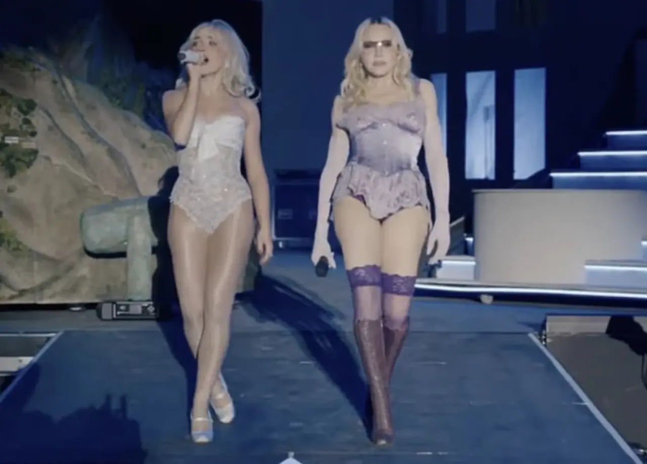 Sahnede Sabrina Carpenter ile bir araya gelen Madonna, kariyerinin kült eserleri arasında yer alan "Vogue" ve "Like A Prayer" gibi parçaları seslendirdi. İkilinin uyumu festival alanındaki binlerce kişi tarafından büyük bir coşkuyla karşılanırken, Madonna’nın mor korse, uyumlu iç çamaşırı, uzun çizmeler ve eldivenlerden oluşan iddialı sahne kostümü dikkatleri üzerine çekti.