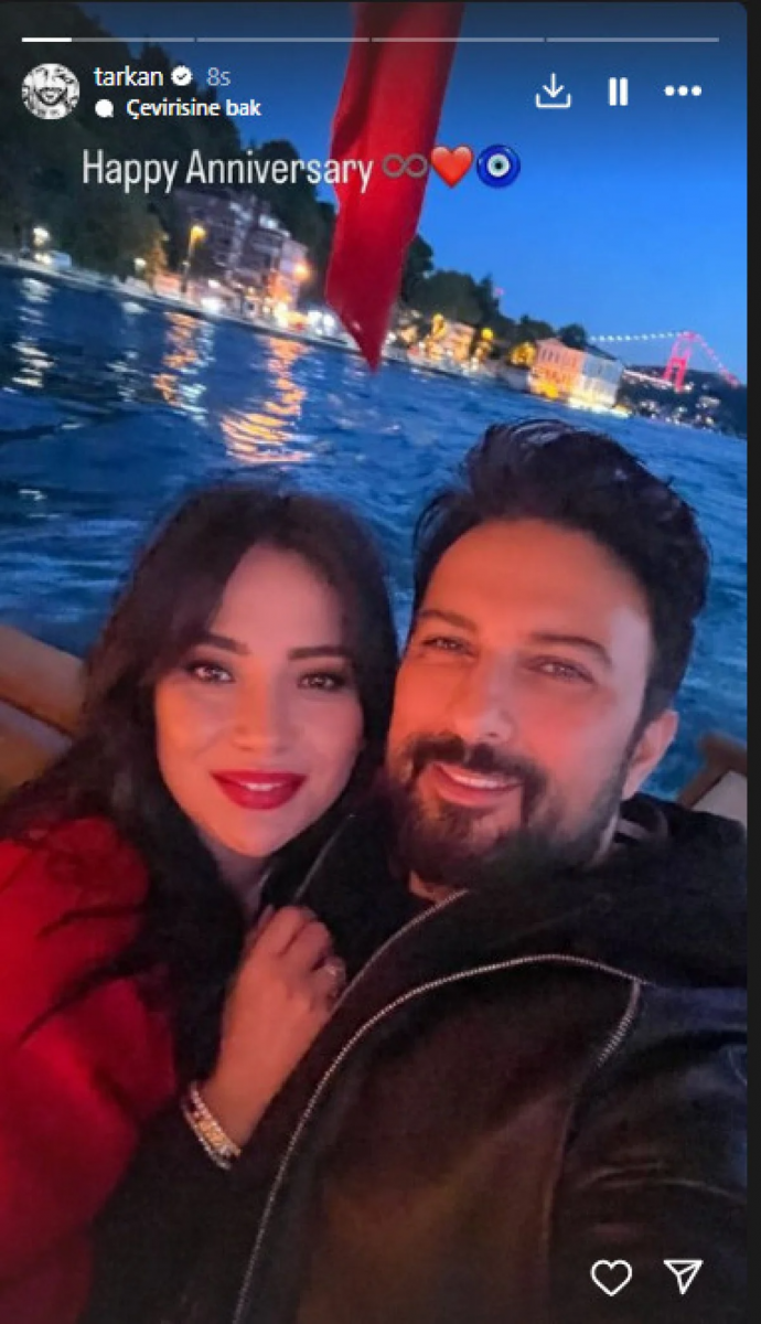 Sosyal medya hesabından yeni fotoğraflar ve videolar paylaşan Tarkan, eşine yıldönümüne özel boğaz jesti yaptı. Boğaz'da aşka gelen Tarkan o anları paylaşmayı ihmal etmedi.