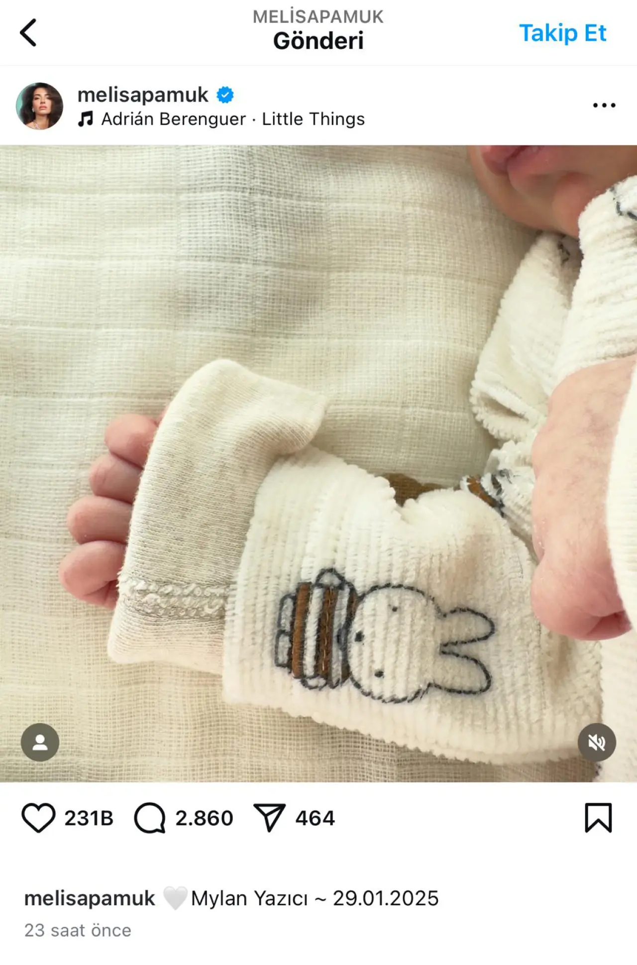 Günler sonra Instagram hesabından oğlunun fotoğrafını yayınlayan oyuncu, "Mylan Yazıcı ~ 29.01.2025" mesajını yazdı. 'Mylan' ismi, sosyal medyada kısa sürede gündem oldu.
