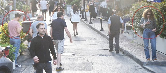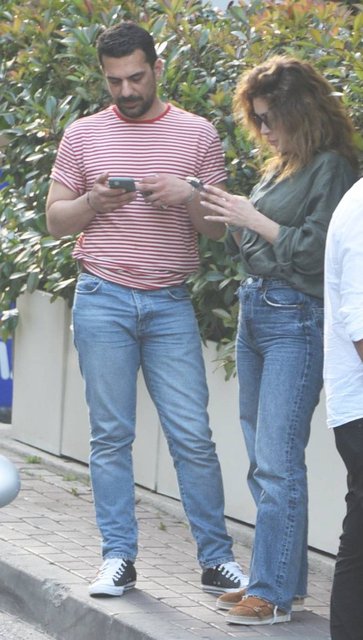 İkili, arabalarını beklediği sırada basın mensuplarını fark edince adeta köşe kapmaca oynadı. Birbirlerinden hemen uzaklaşan çift, ayrı kaldırımlarda bekleyip cep telefonlarından iletişim kurdular.