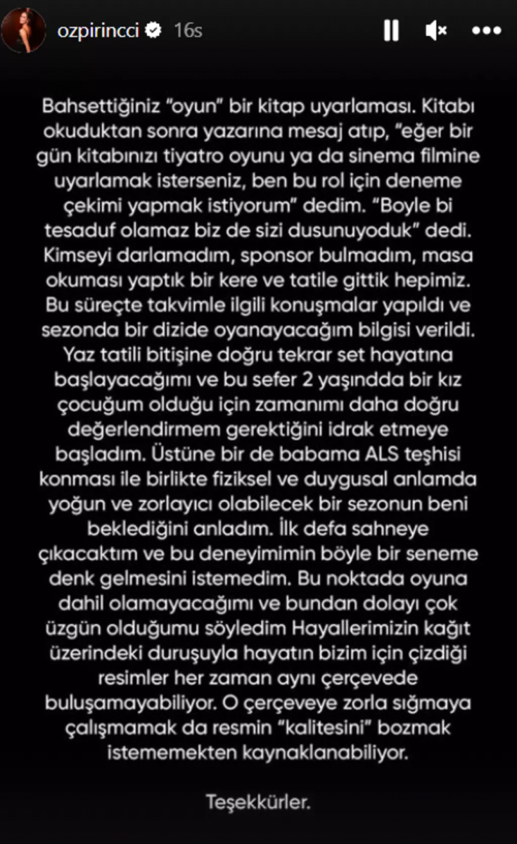 Hakkındaki iddianın ardından sosyal medya hesaplarından yazılı açıklama yapan Özpirinçci, olayın iç yüzü şu sözlerle anlattı: