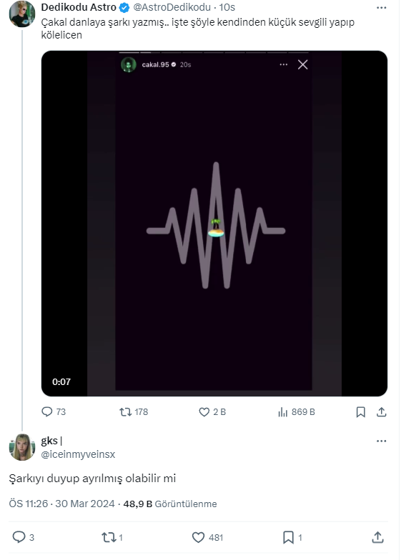 Eski sevgilisine şarkı yazan Çakal, sosyal medyada gündem oldu.