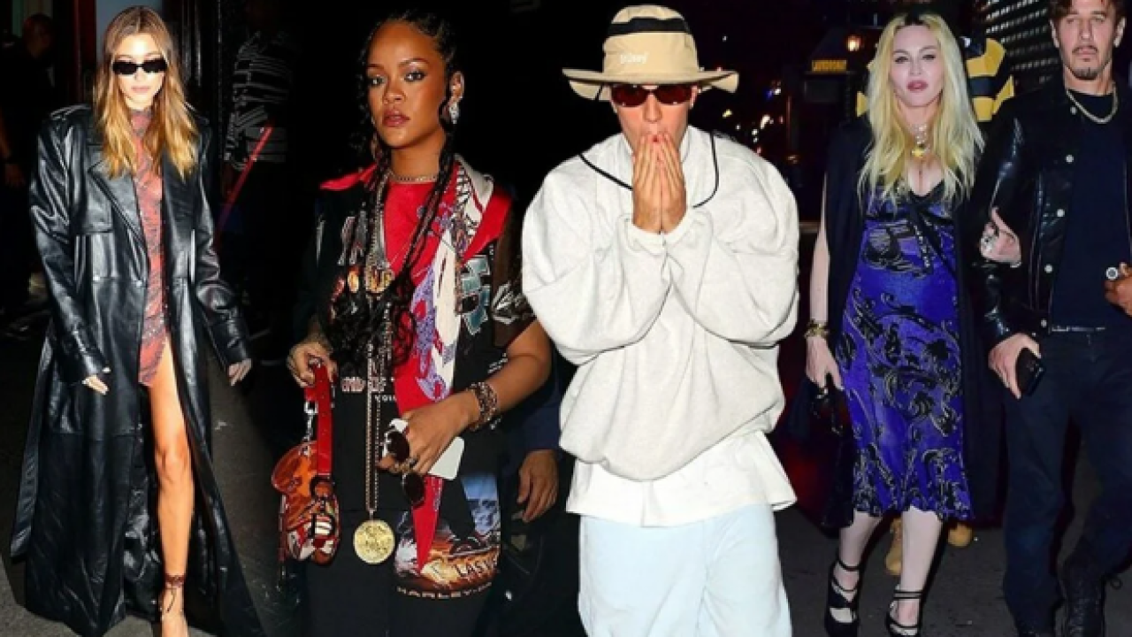 Carbone Restaurant’da gerçekleşen buluşmada Justin Bieber ile eşi Hailey Baldwin, Madonna, Rihanna ve sevgilisi A$AP Rocky gibi isimler yer aldı.