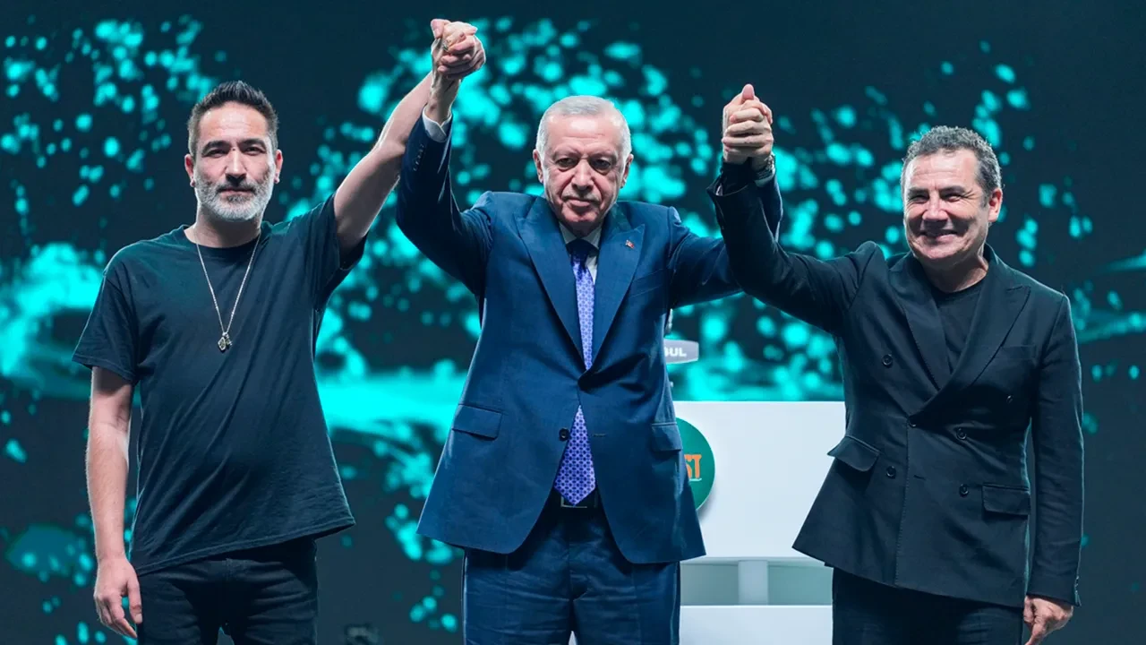 Erdoğan, programda katılan sanatçılar Göçer ve Sagopa Kajmer ile katılımcıları selamladı.