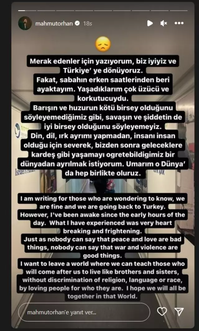 Mahmut Orhan, Instagram hesabından açıklama yaptı. Orhan, "Biz iyiyiz ve Türkiye’ye dönüyoruz. Fakat, sabahın erken erken saatlerinden beri ayaktayım. Yaşadıklarım çok üzücü ve korkutucuydu" dedi.