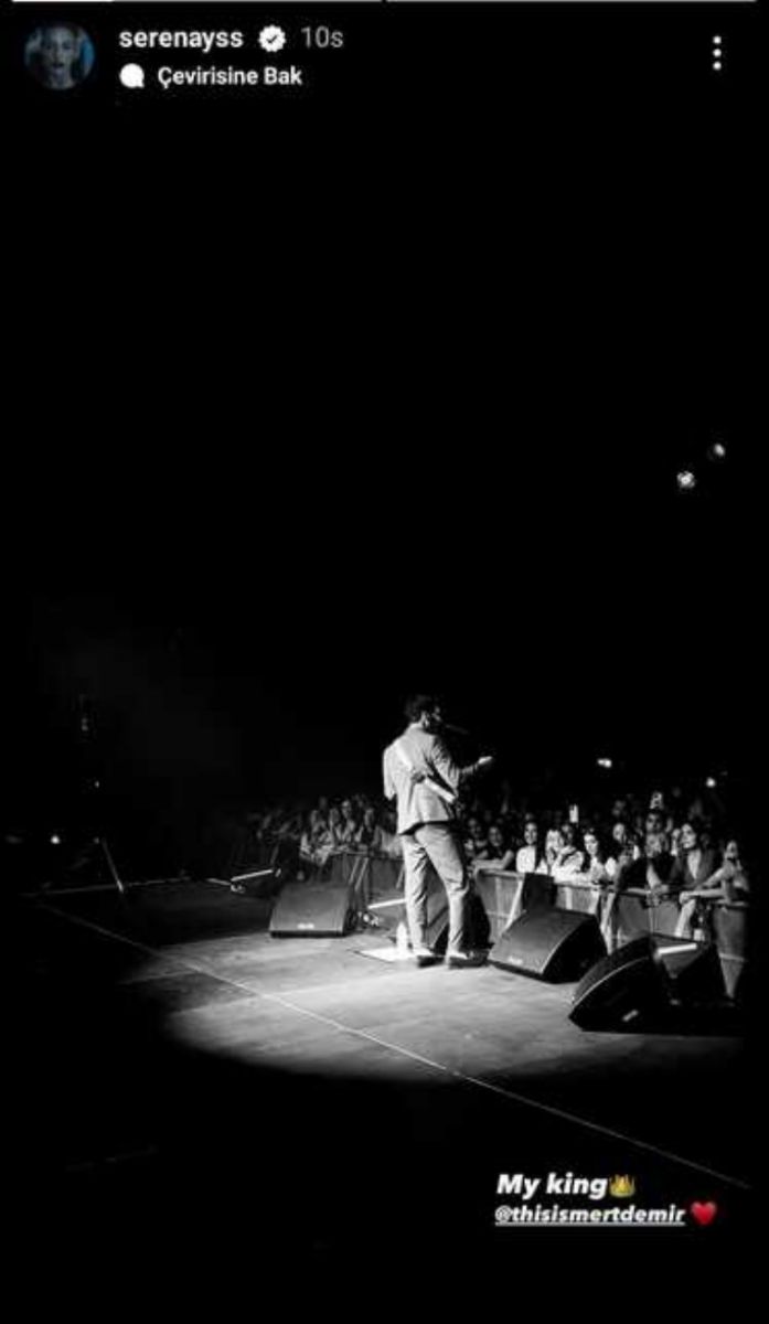 31 yaşındaki Serenay Sarıkaya, sevgilisi sahnede 'Ateşe Düştüm' şarkısını seslendirirken çektiği videoya "Benim kralım" notunu düşerek takipçileriyle paylaştı.