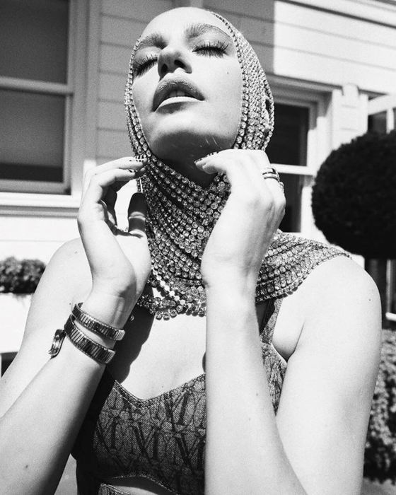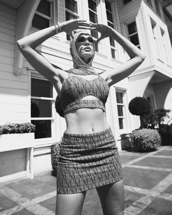Oyuncunun, lansmanda giydiği mini kot etek ve büstiyer takımı göz doldururken, başındaki ilginç saç aksesuarı da oldukça dikkat çekti.