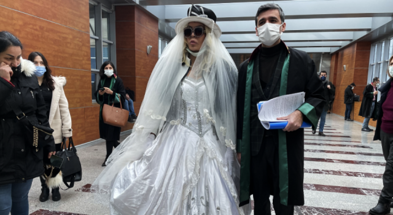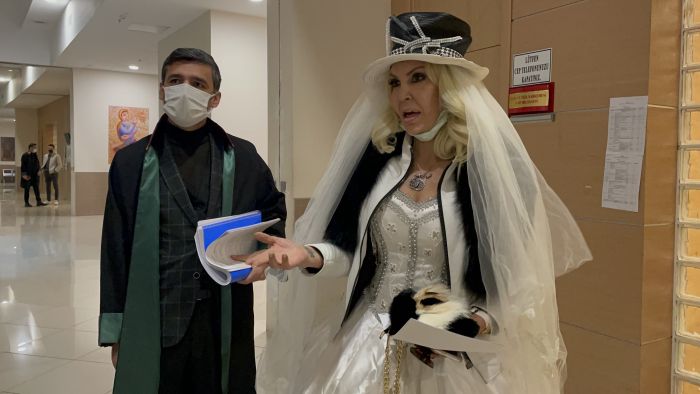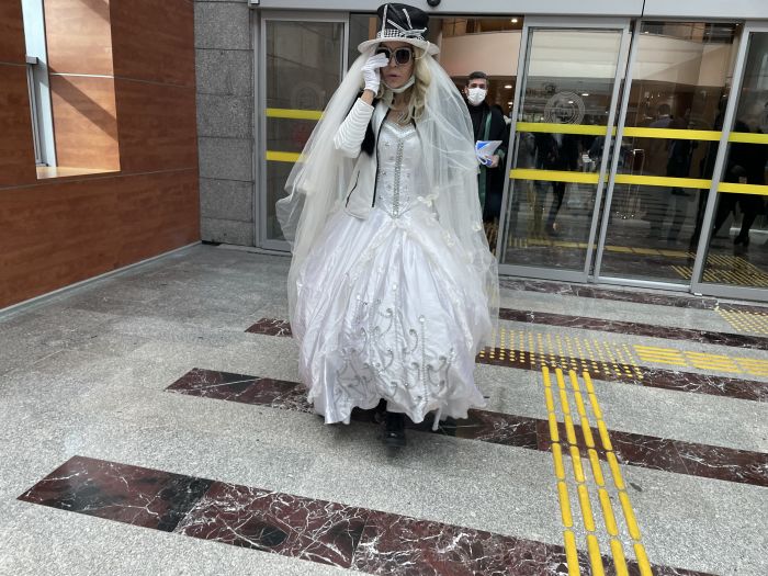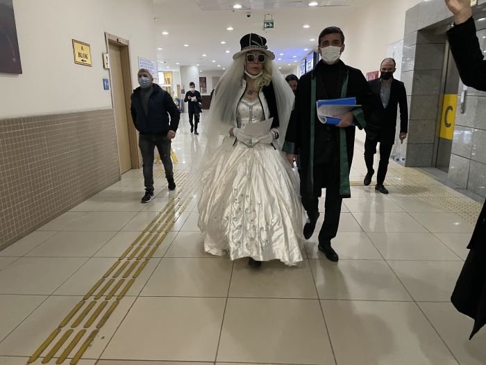 "Sisi" lakaplı Seyhan Soylu, duruşmaya gelinlik ile katıldı