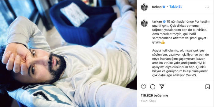 Koronavirüse yakalanan ünlüler kervanına ünlü sanatçı Tarkan da katıldı! Tüm tedbirleri almasına rağmen virüse yakalanan Tarkan sosyal medya hesabından son durumunu paylaştı.